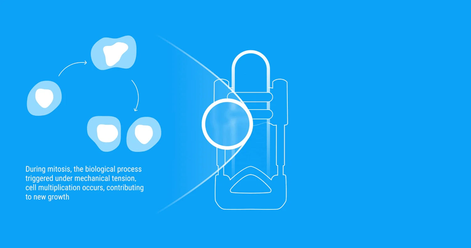 Over time, this sustained stretching encourages the production of new cellular material in the penis, gradually reducing curvature and promoting tissue flexibility.